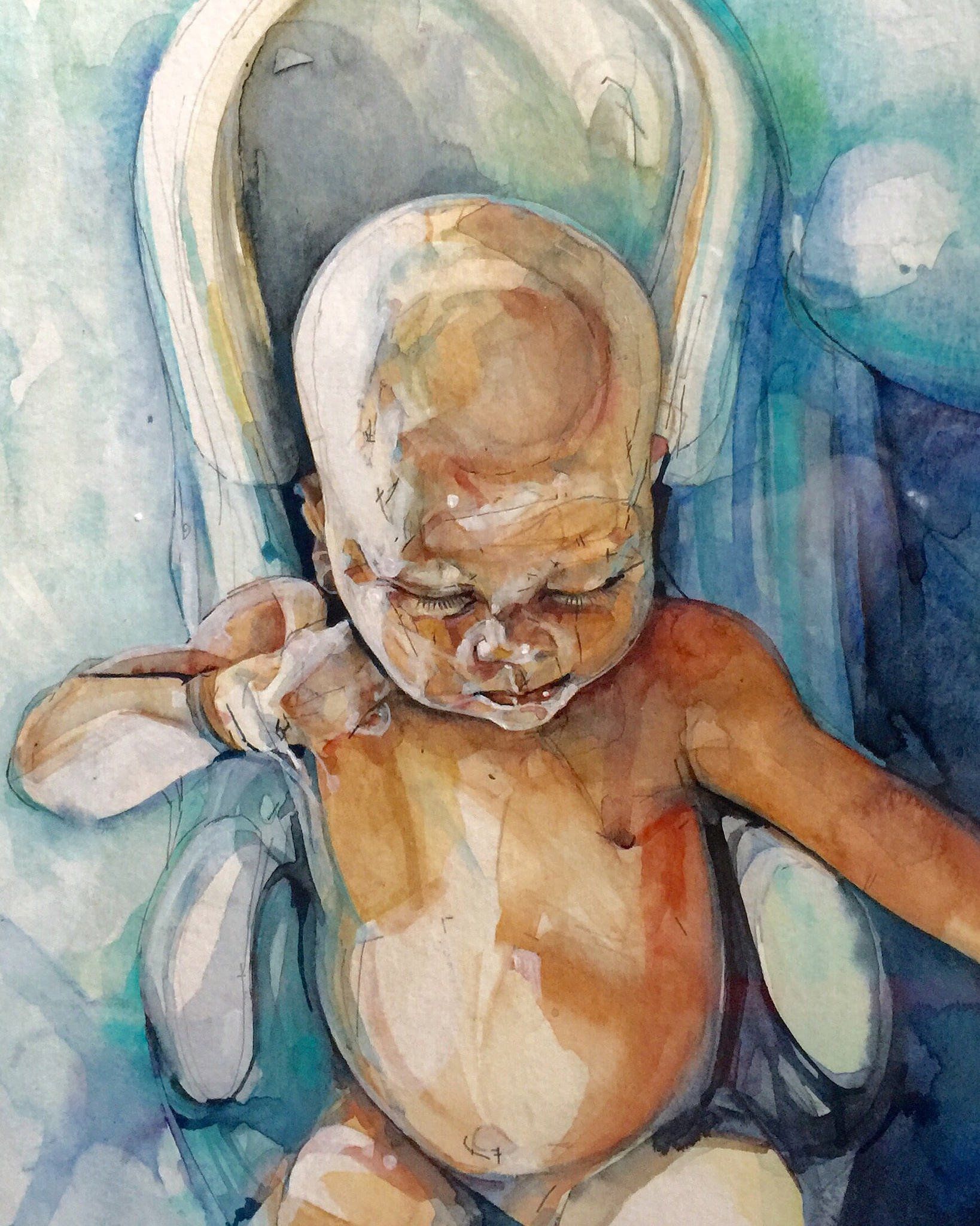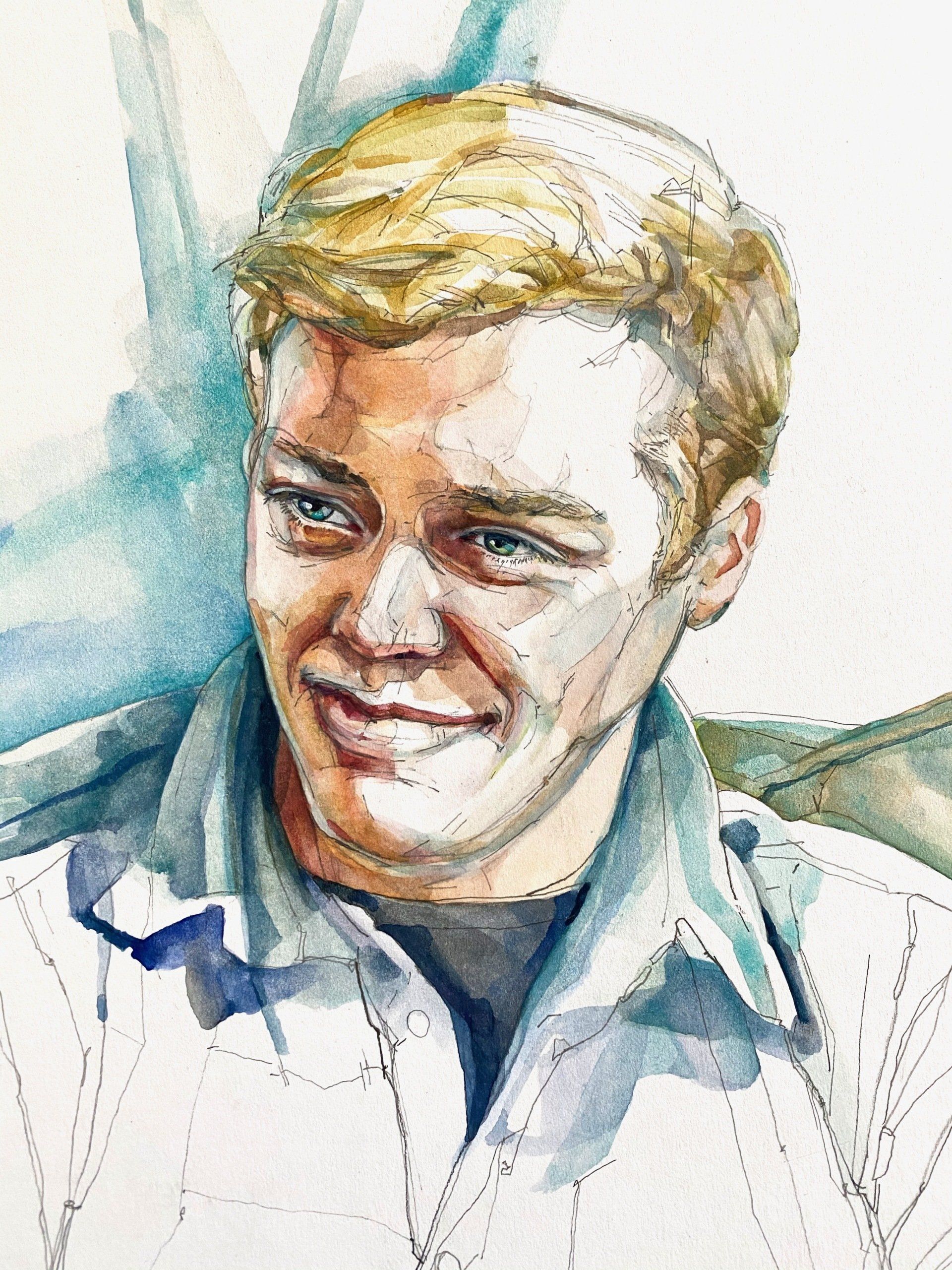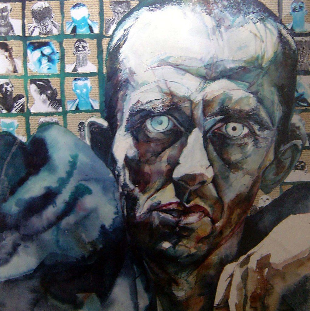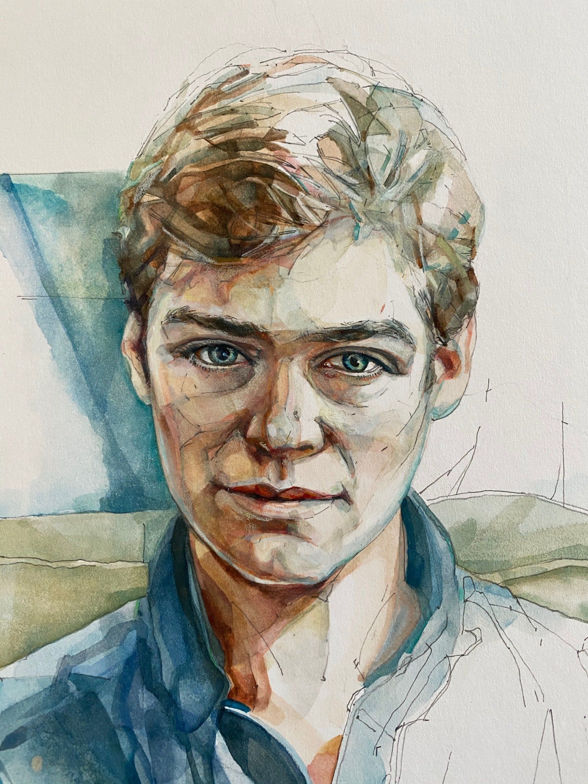 (Football Factory) pecil and watercolour on paper. 50cm x 40cm